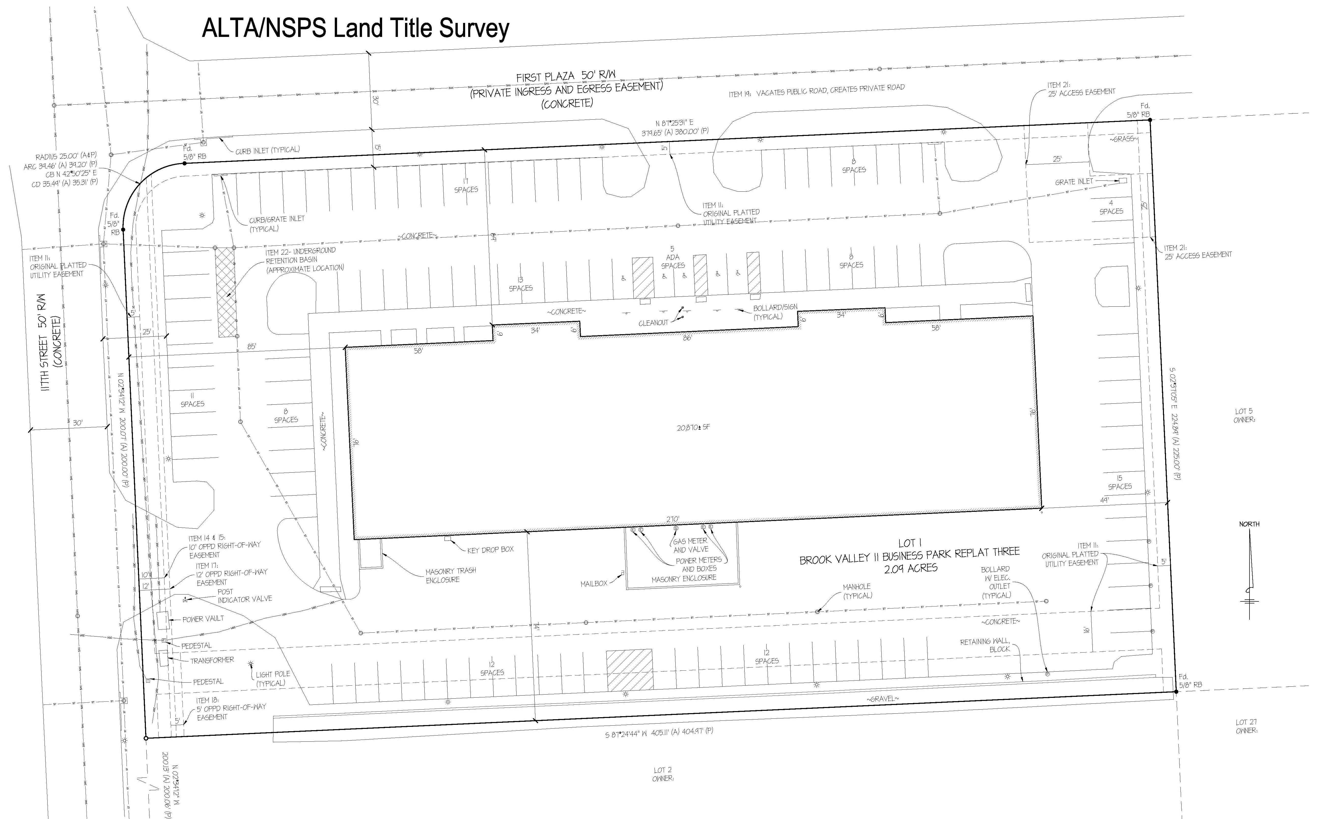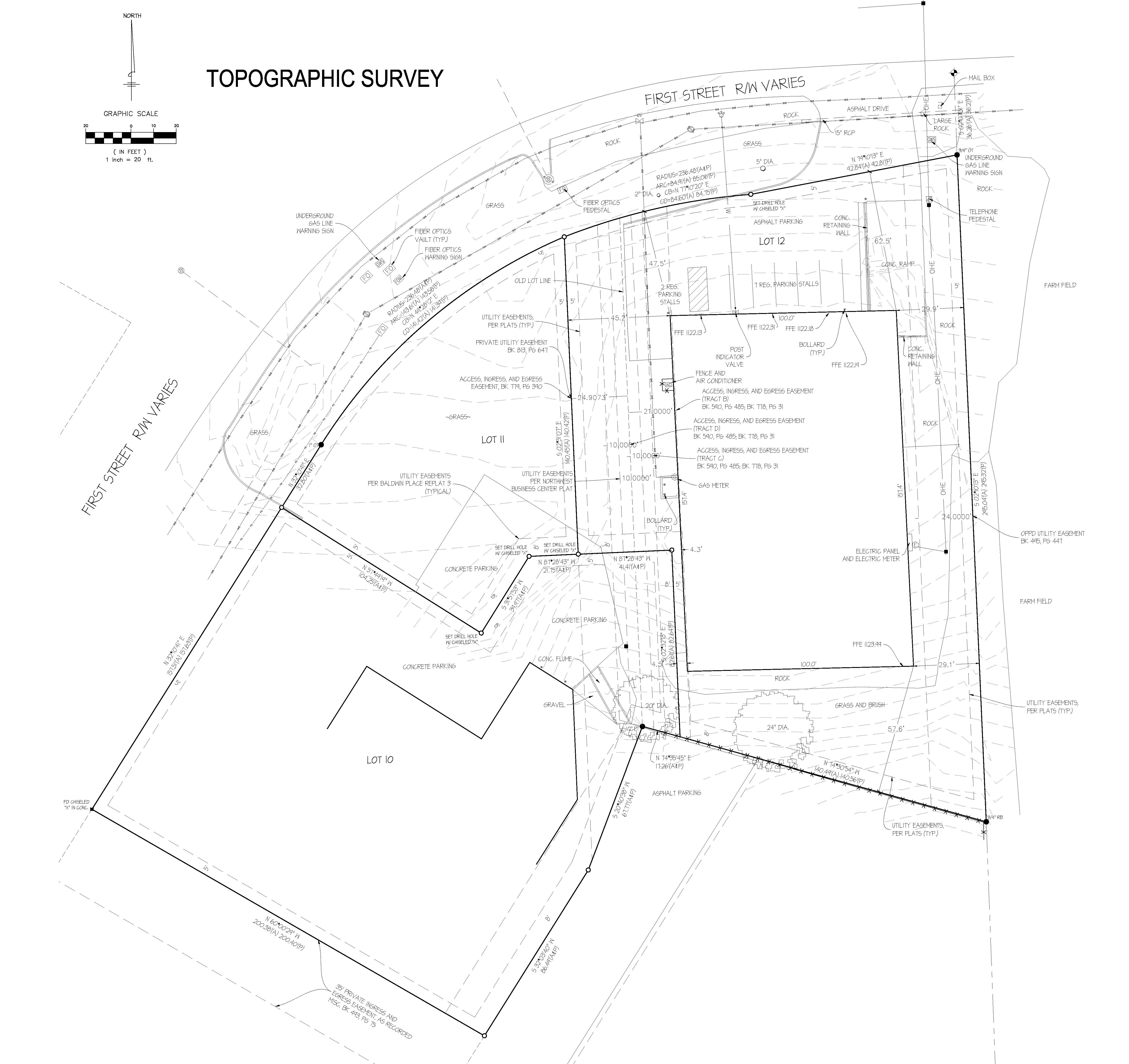 Also known as Site Plan or Plot Plan Survey, a combination of boundary and topographic surveys for preparation of a site plan to be used for designing improvements or developments, and obtaining government building permits.